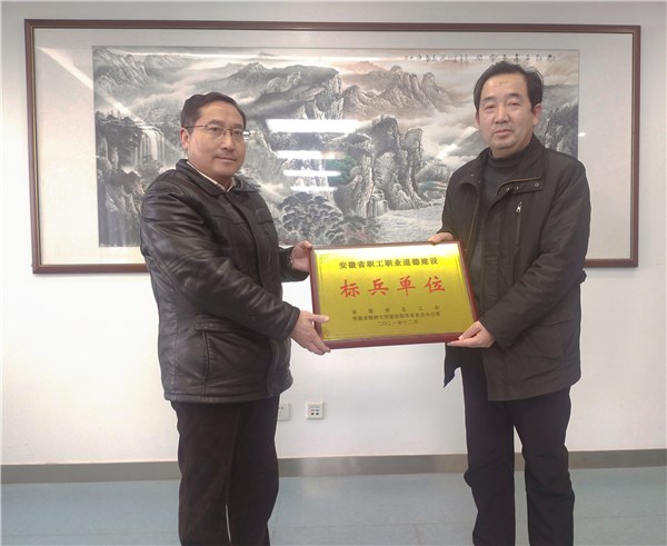 1月18日下午,市总工会党组书记、副主席刘社教,市总工会党组成员、经费审查委员会主任沈军一行为池州市人民医院颁授“安徽省职工职业道德建设标兵单位” 奖牌。