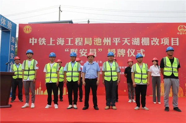 9月9日,中铁上海局三公司池州平天湖棚改项目举办群安员授牌仪式。池州市总工会三级调研员姚国庆,池州市总工会党组成员、经审会主任苏朋乐,池州建投清溪城镇化投资发展有限公司平天湖棚改项目负责人陈先桦,中铁上海局三公司党委副书记、工会主席周宝平出席仪式,项目职工代表、农民工代表共计50余人参加活动。