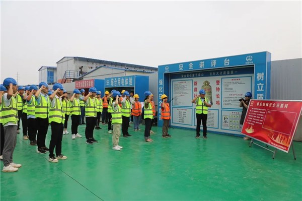 池州市总工会三级调研员姚国庆指出安全是企业的生命线,此次群安员授牌仪式活动,是增强广大职工安全意识和责任意识的重要体现。希望群安员们能够增强主人翁意识,强化岗位责任担当,扎实做好现场施工生产的安全保卫工作,为项目的安全生产保驾护航。项目全体职工要坚决扛起安全生产的旗帜,营造“人人讲安全、事事重安全”的良好氛围,以高度的责任感和使命感将池州平天湖棚改项目打造成精品工程、示范工程,以优异成绩向党的二十大献礼!