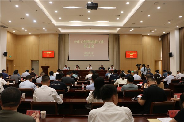 6月14日下午,市总工会召开全市户外劳动者服务站点(工会驿站)建设工作推进会。市人大常委会副主任、市总工会主席、联席会议第一召集人纪良才出席会议并讲话,市总工会党组书记、副主席刘荣发主持会议。市户外劳动者服务站点(工会驿站)建设工作联席会议成员单位负责人、共建单位分管领导,各县区工会主席、党组书记、分管主席和相关部室负责人,全市工会最美驿站负责人和明星站长等80余人参加会议。