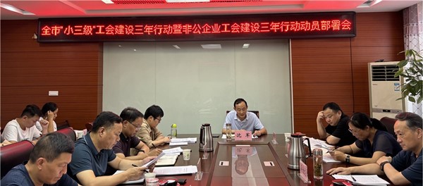 8月6日,池州市总工会召开全市“小三级”工会建设三年行动暨非公企业工会建设三年行动动员部署会。市总工会党组成员、副主席沈军主持会议并讲话。县(区)总工会分管主席、省级以上开发区工会主席和相关工作人员参加会议。