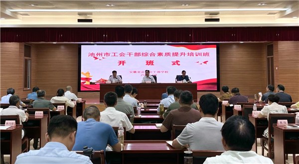 为深入学习贯彻习近平新时代中国特色社会主义思想和习近平总书记关于工人阶级和工会工作的重要论述,积极推进工会服务职工体系建设,全面提升我市工会干部能力和素质,8月13日,池州市总工会在安徽省总工会干部学校举办全市工会领导干部综合素质提升培训班。市总工会办公室主任、四级调研员梅先泽主持开班仪式,安徽省总工会机关党委专职副书记、省总工会干部学校校长刘道友出席开班式并致辞,市总工会党组成员、副主席沈军作开班动员。各县区总工会党组书记、分管基层组织建设的副主席、部分乡镇(街道)、工业园区的工会负责同志、市系统工会主要负责人,以及全市国有企业、事业单位、非公企业工会示范点的工会主席共50余人参加培训。